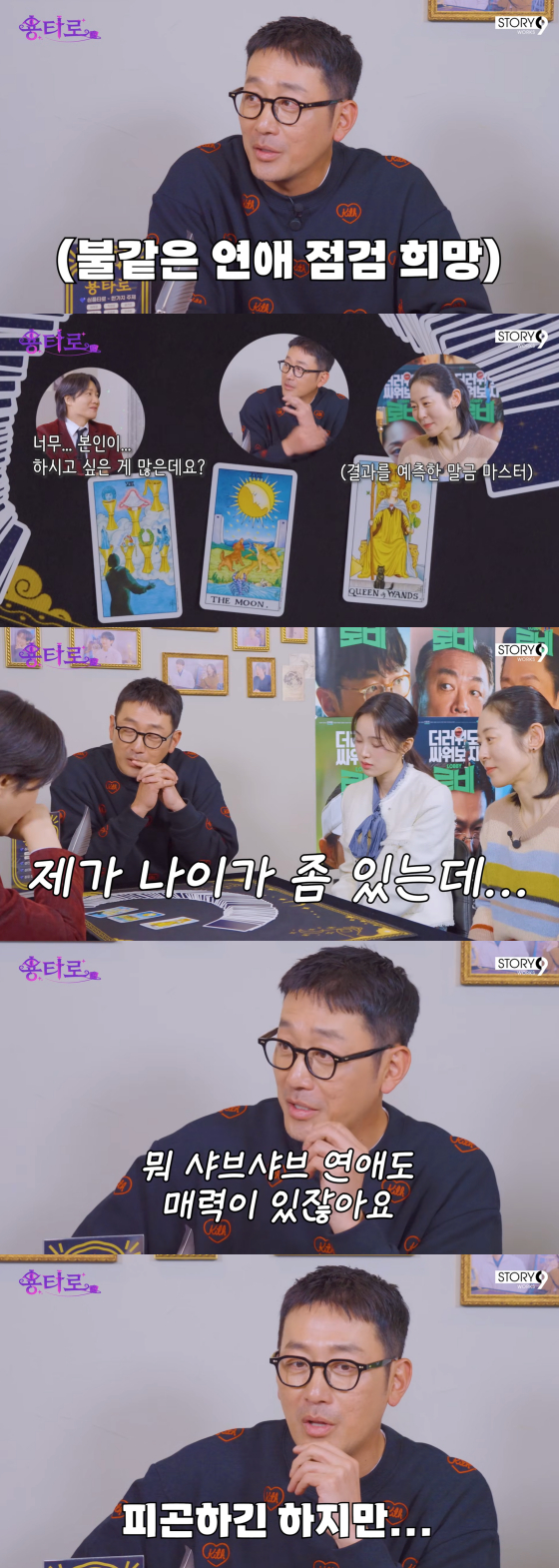 이용진은 하정우가 뽑은 타로 카드를 조합해 타로점을 봤다. 그는 하정우를 향해 "불같은 사랑을 하기에는 본인이 하고 싶은 것, 해야 할 것이 너무 많다"고 설명했다.