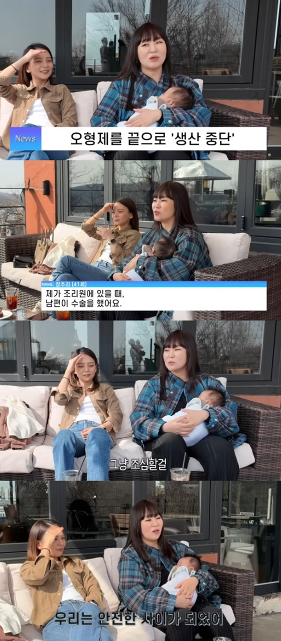 정주리는 "비뇨기과 가면 수술할 때 자녀가 몇 명인지 물어본다. 다섯 명이라고 했더니 (프리패스였다)"며 "그렇게 우리는 안전한 사이가 됐다"고 설명했다.