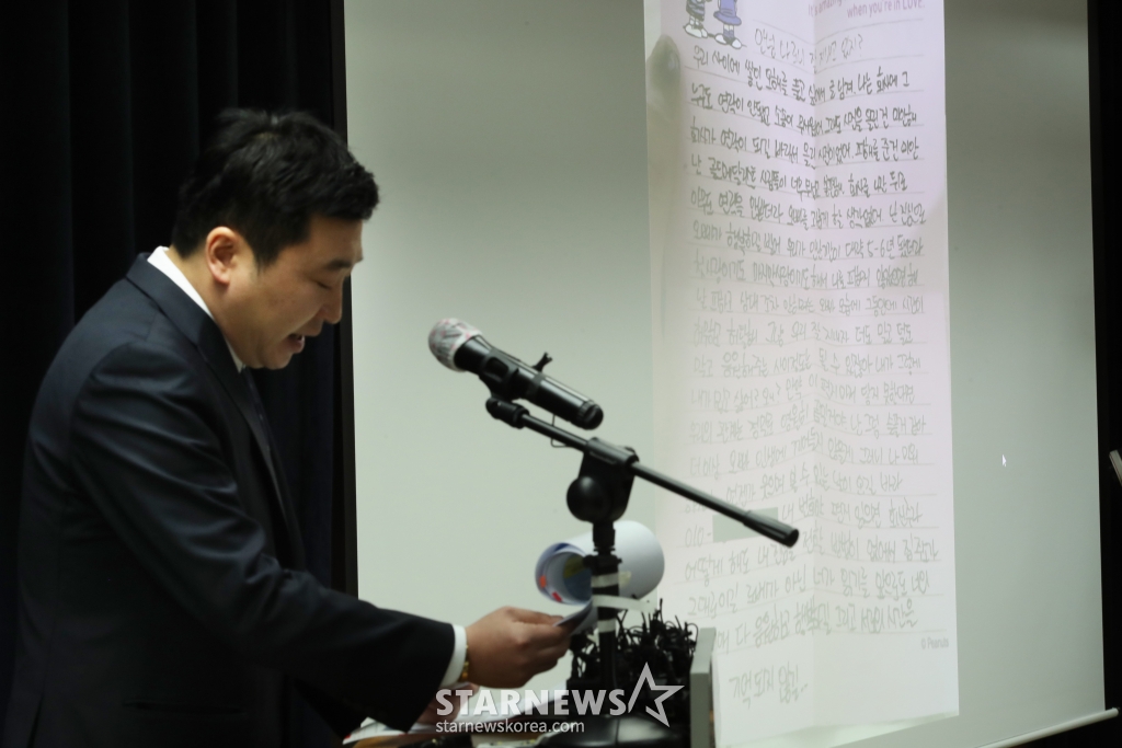 또한 그는 "010-OOOO-OOOO 내 번호야. 편지 읽으면 회신주라. 어떻게 해도 내 진심을 전할 방법이 없어서 집 주소가 그대로이길. (이)로베(골드메달리스트 대표이자 김수현 사촌형)가 아닌 네가 읽기를. 앞으로도 너의 일, 연애 다 응원하고 행복하길. 그리고 서로의 시간을 나쁘게 기억되지 않길"이라고 썼다.