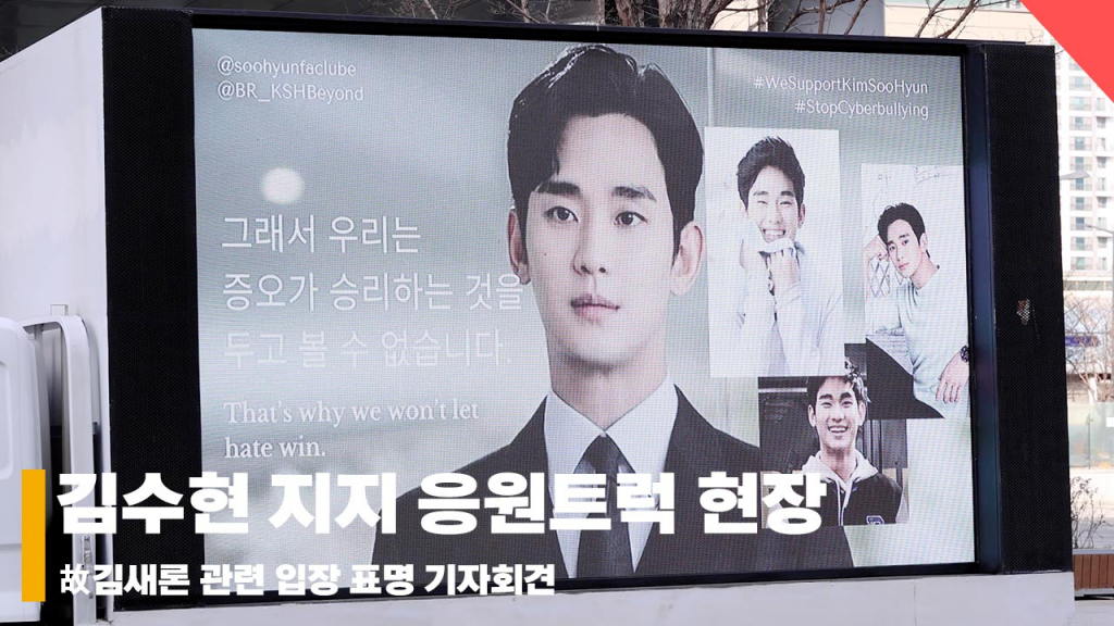 연예방송김수현(KimSooHyun)을 응원하는 팬들의 '응원 트럭' 현장 [영상]발행 : 2025.03.31 ・ 16:04오찬우 기자배우 김수현이 기자회견을 앞둔 31일 오후 서울 마포구 일대에 김수현의 브라질 팬들의 지지와 응원 메시지가 담긴 응원트럭이 세워져 있다. 2025.3.31<저작권자 © 스타뉴스, 무단전재 및 재배포 금지>김수현논란기자회견응원트럭KimSooHyun응원추천 기사오찬우 기자기자홈좋아요 연예-방송의 인기 급상승 뉴스연예-방송의 최신 뉴스