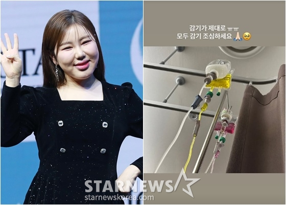 함께 공개된 사진에 따르면 송가인은 병원에서 수액을 맞았다.