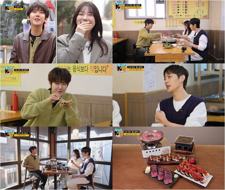 이윽고, 'K-밥 6호점' 후보 식당에 도착한 황광희는 다양한 'K-일식' 메뉴를 훑어보던 중, '흑규카츠'에 대해 "흙을 뿌려서 만든 건가?"라며 맛을 궁금해 한다. 반면 조서형은 '흑백요리사 : 요리 계급 전쟁'에서 '흑수저 팀'으로 출연했던 것을 떠올리며 "흑수저 트라우마가 있다"고 호소해 짠내 웃음을 자아낸다. 그런가 하면, 윤두준은 웰컴 푸드로 자색 고구마칩이 나오자 "아무 것도 안 하고 진짜 말렸나 보다"라고 하더니 "왜 이렇게 맛있냐? 미치겠다. 이거 눈앞에서 치워 달라"고 하소연해 폭소를 더한다.