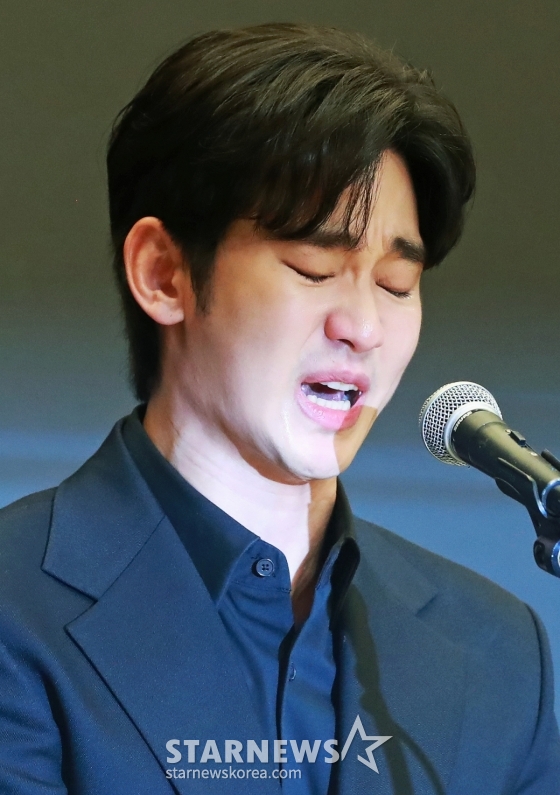 배우 김수현이 31일 오후 서울 마포구 상암동 스탠포드호텔에서 진행된 기자회견에서 최근 불거진 사생활 논란에 대해 밝히고 있다. /2025.03.31 /사진=이동훈 photoguy@