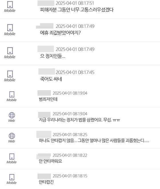 이에 청취자들은 "죽어도 싸다", "하나도 안 안타깝다", "피해자분 너무 고통스러우셨겠다", "죗값 안 치르고 죽어서 안타깝다는 거다" 등의 반응을 보였다.