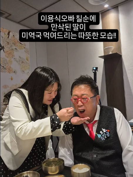 그러면서 조혜련은 이수민이 아버지 이용식에게 미역국을 먹여주는 모습을 공개하며 "이용식 오빠 칠순에 만삭된 딸이 미역국 먹여드리는 따뜻한 모습"이라고 했다. 이 자리에는 이용식 칠순 파티에 더해 출산을 앞둔 딸 이수민의 베이비샤워까지 열려 순산을 기원했고, 조혜련은 "수민. 예쁜 아기 건강하게 낳기를 기도할게"라고 덧붙였다.
