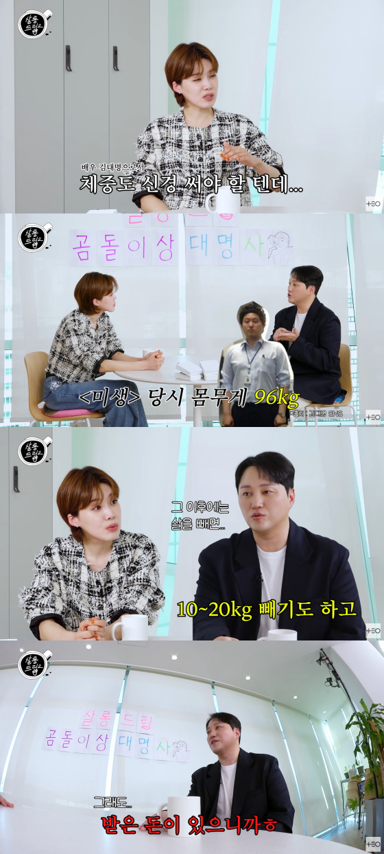 이어 "작품 때는 체중 등락이 컸다. 드라마 '미생' 당시 몸무게가 96kg였는데 그 이후에는 살을 빼면 10~20kg 빼기도 한다. 받은 돈이 있으니까"라고 너스레를 떨었다.