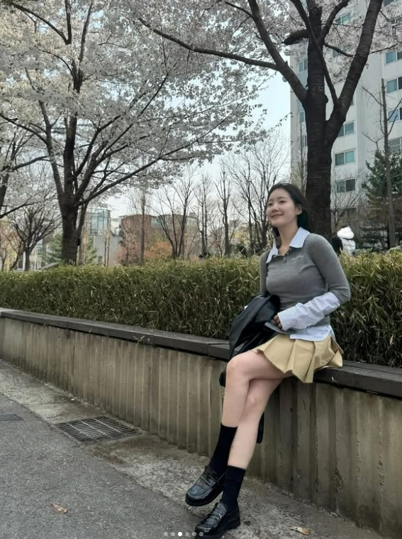 사진 속 진지희는 벚꽃이 만개한 나무를 감상하며 셀카를 촬영했다.
