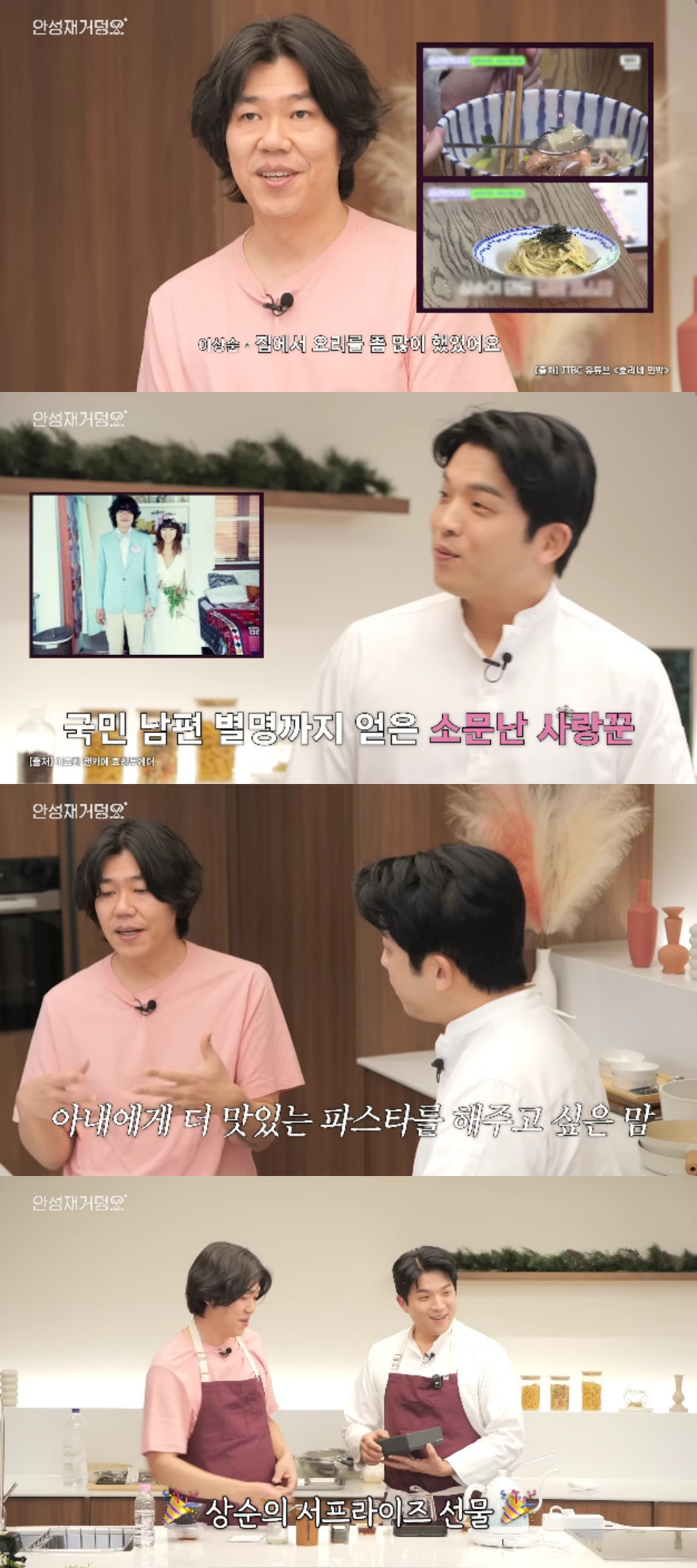 이어 이상순은 안성재를 찾은 이유에 대해 "파스타나 양식 요리를 좋아하고, 라면보다 더 간단하다. 파스타는 건강하게 먹을 수 있는 음식이라는 느낌이 들어서 아내에게 파스타를 만들어주면 좀 남긴다. 근데 레스토랑에서 먹으면 잘 먹는다. 아내가 면 요리를 별로 안 좋아한다. 근데 아내가 더 맛있게 먹을 수 있는 파스타 비법이 궁금하다"라고 물었다.