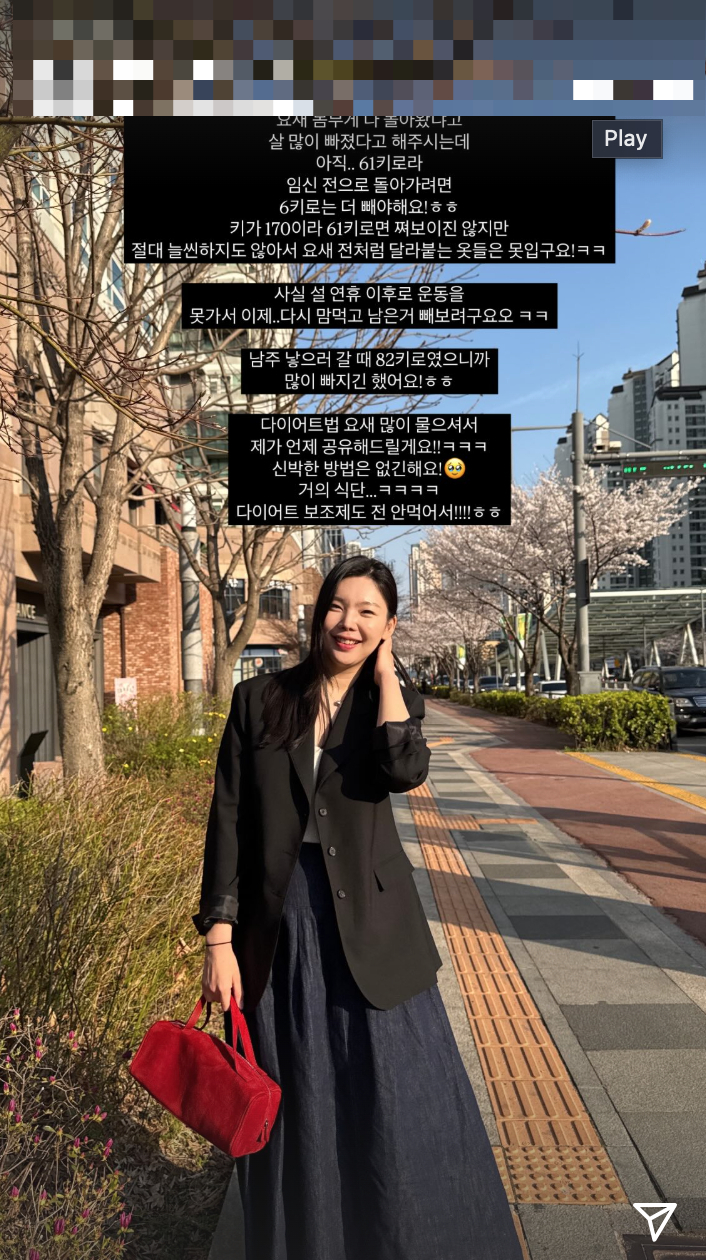 한편 이다은은 "남주 낳으러 갈때 80킬로 넘었던 것 아시죠. 빨리 빼지 않으면 큰일날 듯 하여 12월 말부터 식단+운동 병행하고 있어요. 무리되지 않는 선에서 잘해볼게요. 걱정해주셔서 감사해요"라며 다이어트 근황을 알렸다.