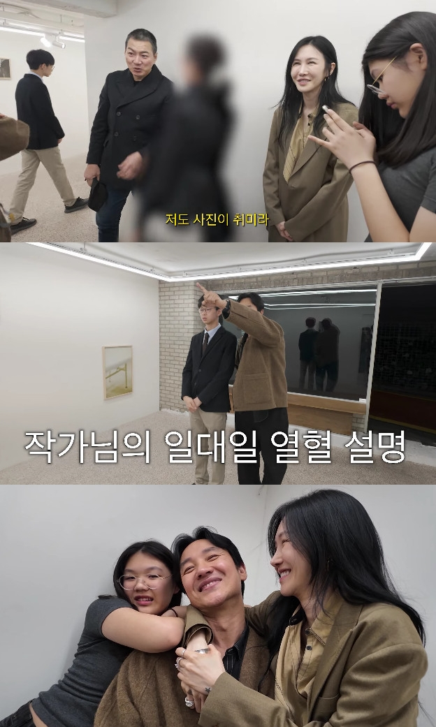 배우 송일국과 세 아들 대한, 민국, 만세가 배우 엄태웅의 사진전을 찾았다.