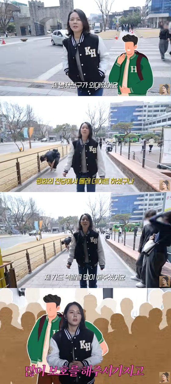 영상에서 한가인은 과거 자신이 다녔던 경희대학교에 방문했다.