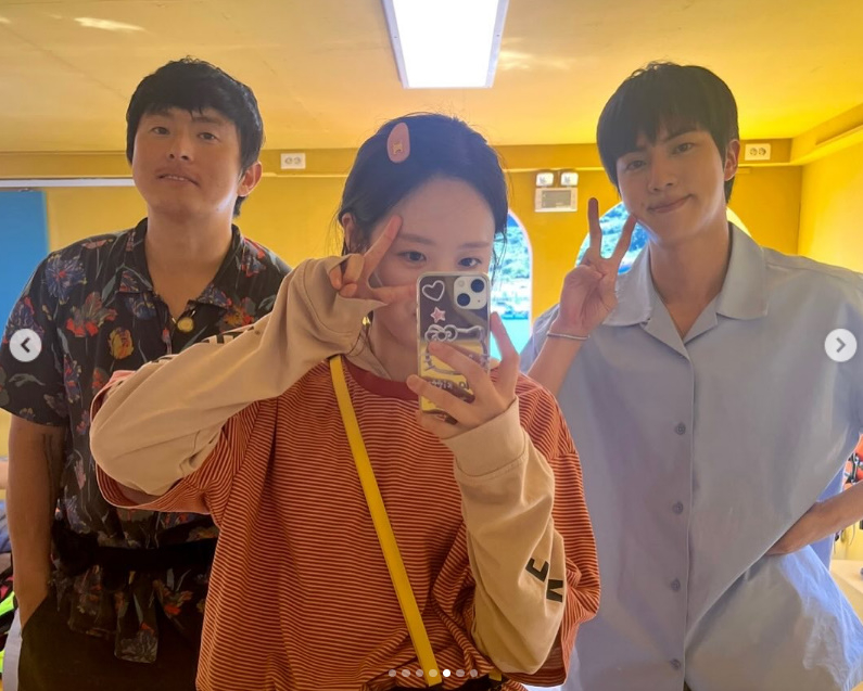 사진 속 지예은, 기안84, 진은 꾸민 듯 꾸미지 않은 편안한 차림으로 카메라를 향해 브이 포즈를 취하고 있는 모습. 세 사람은 현재 넷플릭스에서 공개되고 있는 예능 '대환장 기안장'에서 호흡을 맞추고 있는 만큼 '현실 남매' 분위기를 자아내며 글로벌 팬들에게 눈호강을 선물했다.