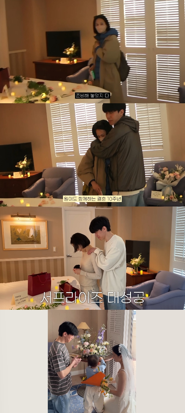 공개된 영상 속에는 결혼 10주년을 맞아 제주도로 향한 윤승아, 김무열 부부의 모습이 담겼다. 두 사람은 아들과 함께 호텔로 향했고, 방에는 김무열이 미리 준비한 서프라이즈 파티가 준비돼 있었다.