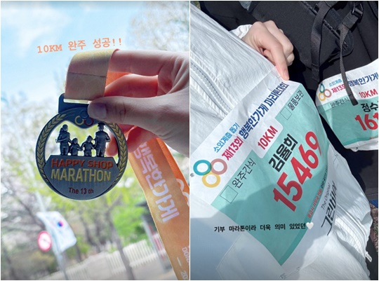 율희는 13일 자신의 개인계정에 이날 한 기부마라톤 참가 사진을 게재했다. 율희는 "기부 마라톤이라 더욱 의미가 있었던"이라고 알렸고 이후 "10km 완주성공"이라고 전했다.