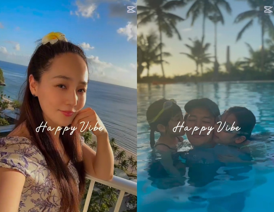 공개된 영상 속에는 괌으로 떠난 유진, 기태영 부부와 두 딸의 모습이 담겼다. 특히 수영장에서 두 딸을 안고 양쪽에서 뽀뽀를 받고 있는 기태영의 행복한 미소가 시선을 사로잡는다.