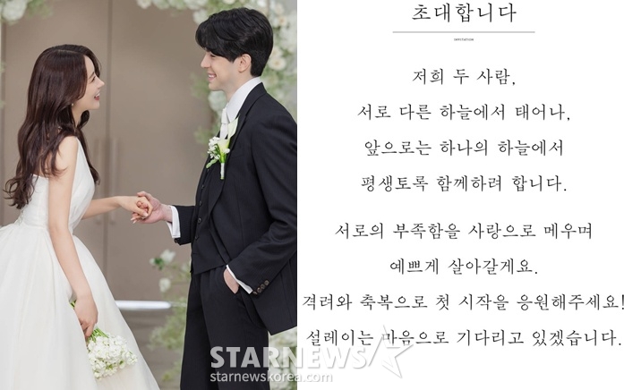 또한 "격려와 축복으로 첫 시작을 응원해주세요. 설레는 마음으로 기다리고 있겠습니다"라며 하객들에게 초대 글을 남겼다. 함께 게재된 초대 영상에는 "서로의 심장이 하나인 것처럼 평생동안 함께하겠습니다"라는 문구와 함께 두 사람의 로맨틱한 웨딩 사진이 담겨 눈길을 끌었다.