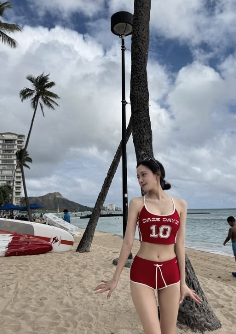 공개된 사진 속 효민은 하와이로 신혼여행을 떠나 행복한 시간들을 보내고 있다. 특히 와이키키 해변에서의 과감한 비키니 뒤태도 시선을 압도한다.