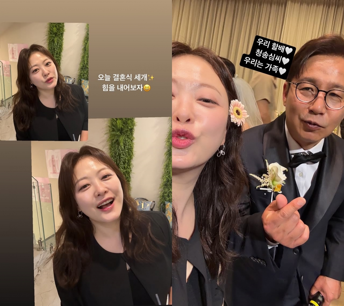 심진화는 이어 심현섭의 결혼식에 참석한 모습을 공개하며 "우리 선배님 행복하세요"라며 "우리 할아버지. 청송 심씨. 우리는 가족"이라고 애정을 표현했다. 또한 남편 김원효를 비롯해 개그맨 동료인 박준형, 박성호, 정종철과 함께 찍은 사진을 공개해 눈길을 끌었다.