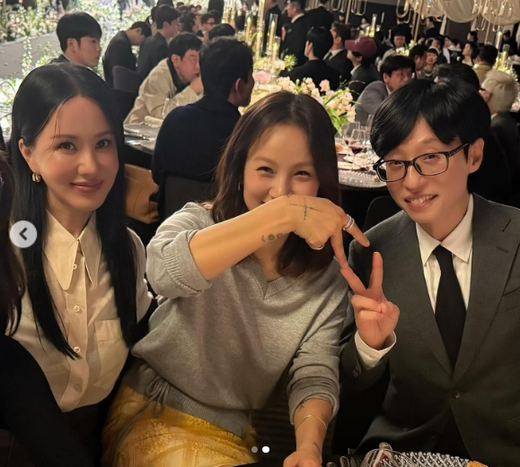 특히 이효리와 유재석은 각자의 브이 포즈 손가락을 서로 맞댄 채 장난을 치고 있어 보는 이들에게 웃음을 안겼다.