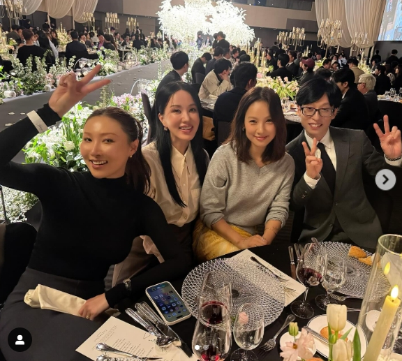 21일 오후 엄정화는 개인 SNS에 "행복한 종민의 결혼식에서~ 오랜만에 반가운 우리"라며 이효리, 유재석, 화사와 함께 찍은 셀카 두 장을 게재했다.