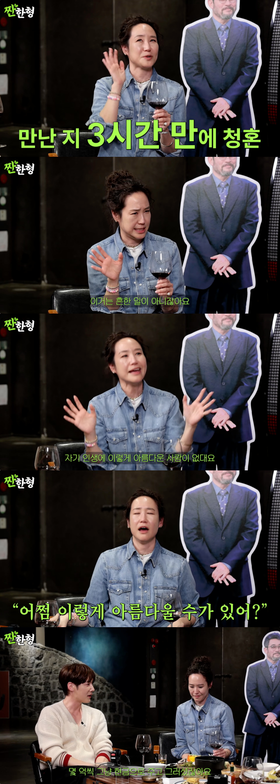 이날 강주은은 최민수와 인연에 대해 "최민수가 저를 만난 지 3시간 만에 청혼했다. 흔한 일은 아니지 않나. 자기 인생을 던져야 하는 건데 청혼한다는 게 너무 신기했다"고 말문을 열었다.