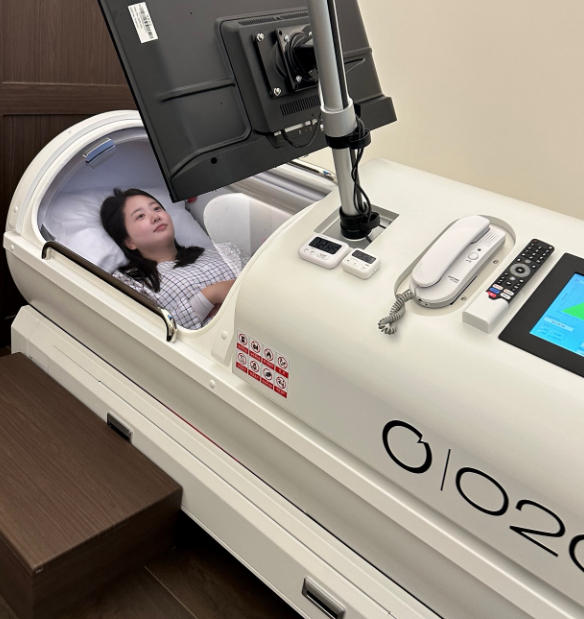 이어 "산소챔버에 들어가서 60분동안 편안하게 누워만 있으면 노화 관리 , 상처 치유 회복 , 수면 개선, 스트레스 관리 등에 도움이 된다고 하는데요. 확실히 받고 나면 컨디션 차이가 나요 신기합니다 !"라고 소개했다.