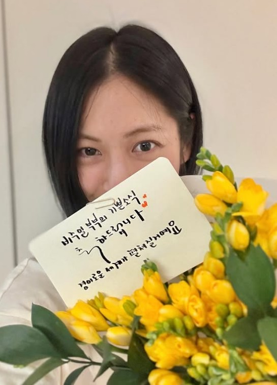 공개된 사진에는 태아의 초음파 사진이 담겨 있다. 또 다른 사진 속 반소영은 '비주얼 부부의 기쁜 소식 축하드립니다. 경이로운 세계가 펼쳐질 거예요'라고 적힌 카드와 함께 아름다운 꽃다발을 들고 있다.