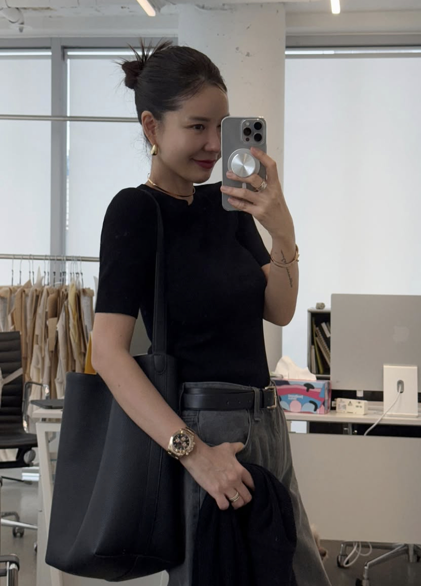 공개된 사진에는 김준희가 미소를 지으며 거울 속 자신을 촬영하는 모습이 담겼다.