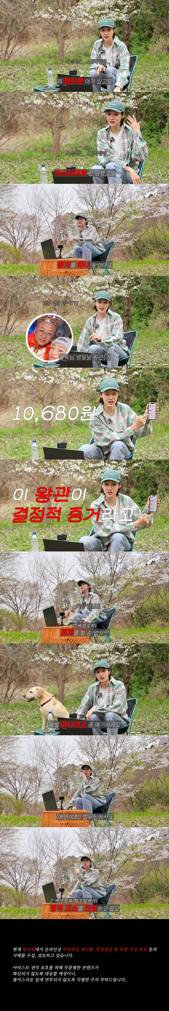 특히 그는 "그 특정 종교에서 DM(다이렉트 메시지)도 왔다. 공개할 수는 없지만, 나 보고 제발 아니라고 얘기하라더라. 그쪽도 법무팀에서도 법적 고소를 진행하고 있고 각각 유튜버에 메일을 보내서, 현재 영상이 많이 내려지긴 했다고 한다"라고 알렸다.