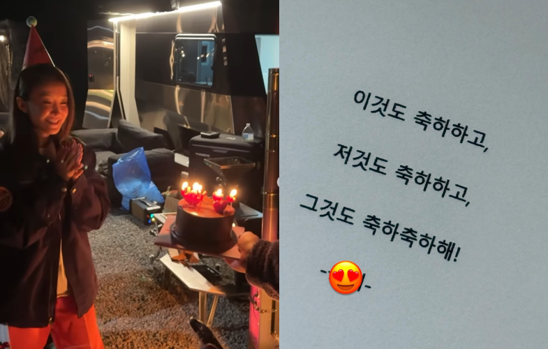 공개된 게시물에서 이시영은 주변 지인들에게 생일 축하를 받고 있다.