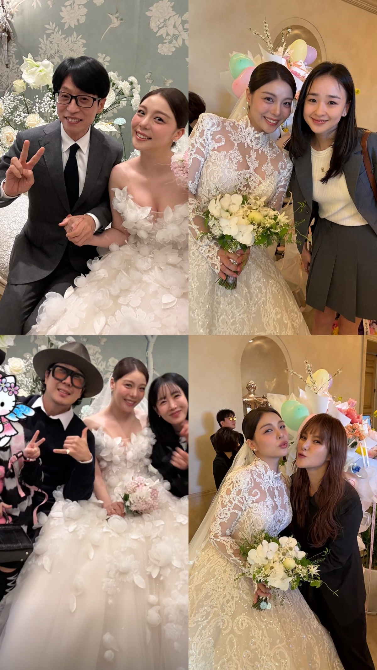 23일 에일리는 자신의 인스타그램에 결혼식 당시 사진을 올리며 유재석, 하하 별 부부, 린, 태진아, 이루, 김준현, 거미, 알리, 허각, 이무진, 인순이, KCM, 장성규, 손연재 등 수많은 하객들과 함께한 사진을 공개했다.