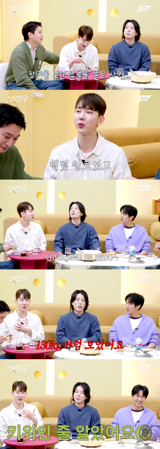 조권은 그러면서 "그럴 수밖에 없는 게 (이창민이) 당시에 몸무게 100kg가 넘었다. 연두 형광색 티셔츠를 입고 얼굴에 점도 정말 많아서 키위인 줄 알았다"고 이창민의 첫 인상을 언급했다.