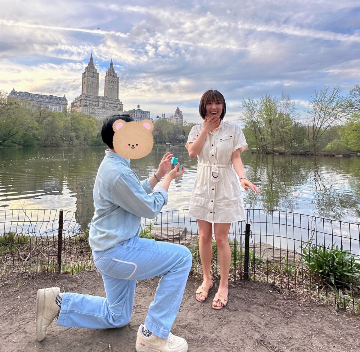 해당 사진엔 민이 뉴욕 센트럴파크에서 예비 신랑으로부터 프러포즈를 받는 장면이 담겼다. 예비 신랑은 무릎까지 꿇고 결혼반지를 건네는 로맨틱한 면모를 보였다. 이에 민은 기쁨을 감추지 못하는 모습으로 감격의 순간을 엿보게 했다.