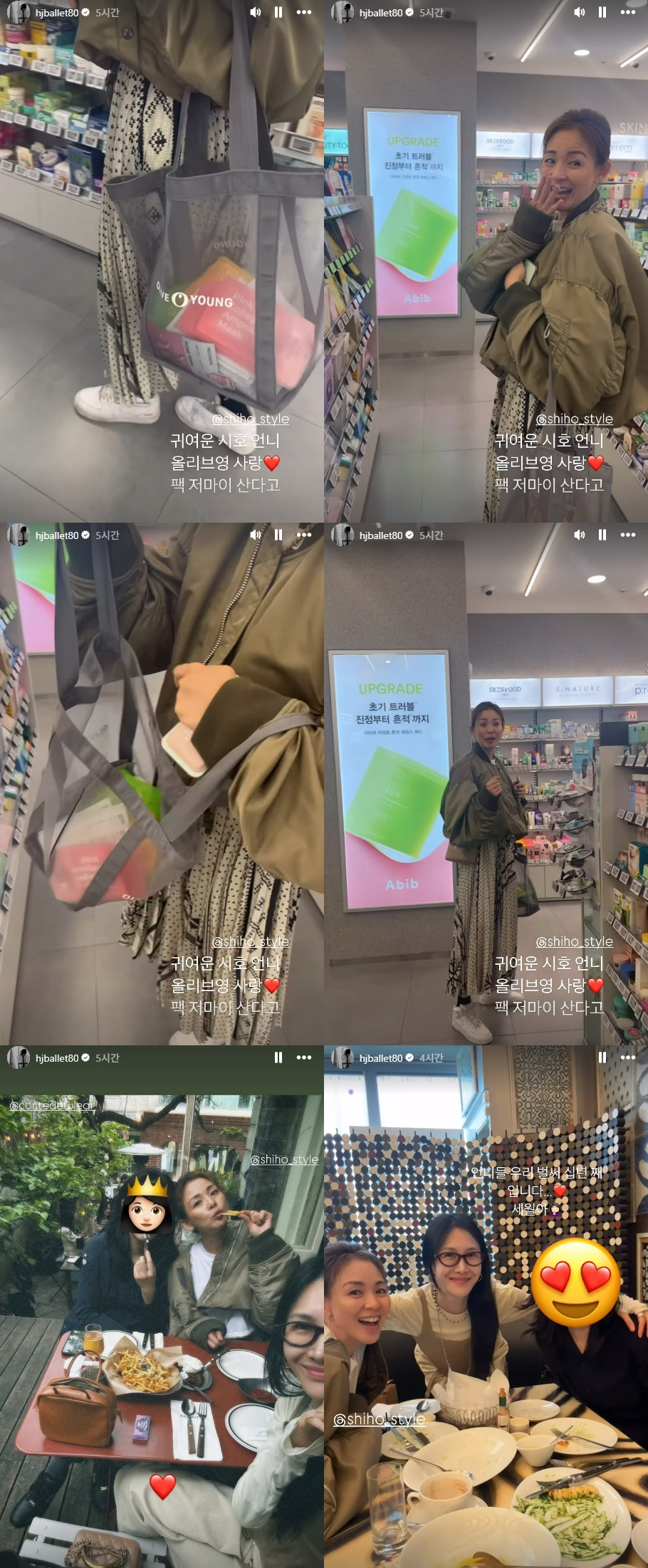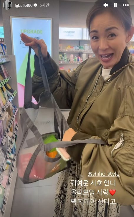 윤혜진은 "귀여운 시호 언니. 올리브영 사랑♥ 팩 저만큼 산다고"라며 영상을 공개했다. 야노 시호는 화장품 가게에서 마스크팩을 장바구니 가득 담은 모습이 들키자 웃음을 터뜨리며 추천 상품이 있는지 또 물었다.