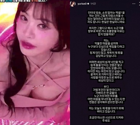 선정적인 방송에 곱지 않은 시선이 쏠리자 서유리는 28일 오후 자신의 인스타그램 스토리에 장문의 글을 게재했다.