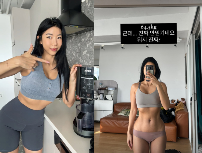 운동 크리에이터 제이제이가 64kg 몸무게를 재차 인증했다.