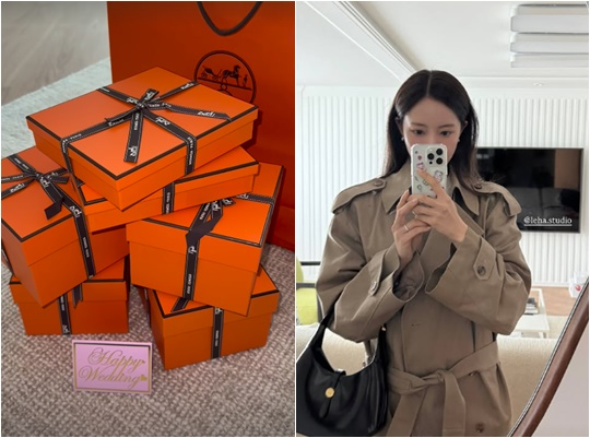 특히 에르메스의 박스가 담긴 영상 속에는 '해피 웨딩'이라는 결혼 축하 문구가 있어 눈길을 끈다.