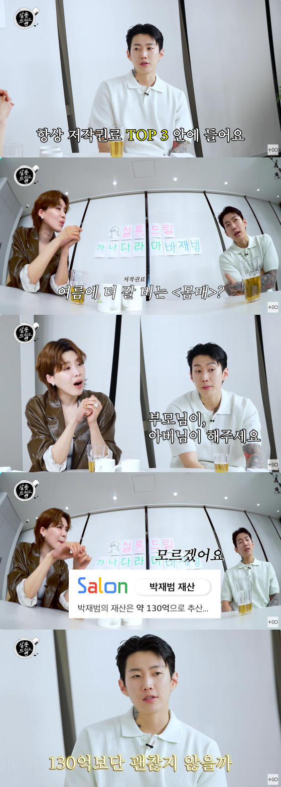 저작권료 효자곡은 2013년 발매된 곡 '좋아'라고. 박재범은 "'좋아'는 사람들이 꾸준하게 들어서 항상 저작권료 톱3 안에 들어있다. 2013년에 나왔으니까 벌써 10년이 넘었다"고 밝혔다.