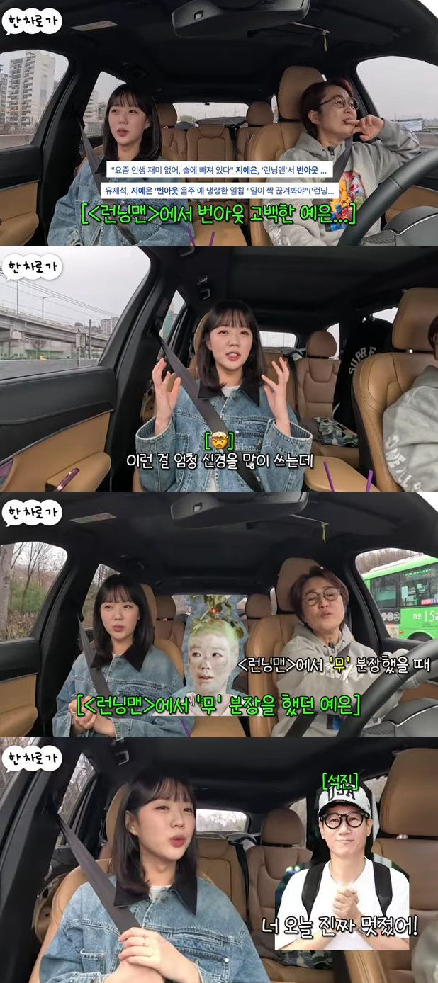 또한 지예은은 지석진에게 감동받은 일화를 밝히기도. 그는 "'무' 분장했을 때 그 주가 '대환장 기안장' 촬영 직후였다. 잠을 못 잘 땐데 일찍 와서 분장을 했는데 여름이라서 땀이 줄줄 나더라. 방송에서 분장한 게 처음이니까 너무 부끄럽고, 시집 못 갈 거 같더라. 그래도 웃겼으면 좋겠어서 열심히 했다. 두 가지 마음이 공존했다. 그러고 나서 집 가는 길에 석진 선배님한테 전화가 와서 '오늘 진짜 멋있었다'고 해주시는데 너무 눈물이 나더라. 그래서 너무 감동받았다"고 전했다.