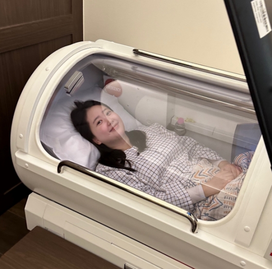 이어 "산소챔버에 들어가서 60분동안 편안하게 누워만 있으면 노화 관리 , 상처 치유 회복 , 수면 개선, 스트레스 관리 등에 도움이 된다고 하는데요. 확실히 받고 나면 컨디션 차이가 나요 신기합니다 !"라고 소개했다.