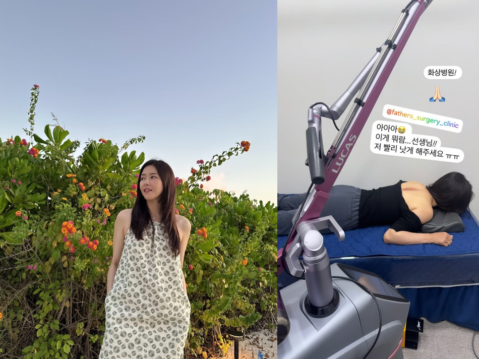 공개된 사진 속 박하나는 등에 화상을 입은 것으로 보이며 "아픈 줄도 몰랐는데 갑자기 색이 올라와서 병원 갔다. 낫고 있는 과정이라고 사라진다고 한다"면서 "바로 레이저 치료했더니 벌써 흐릿해지고 있다"고 전했다.