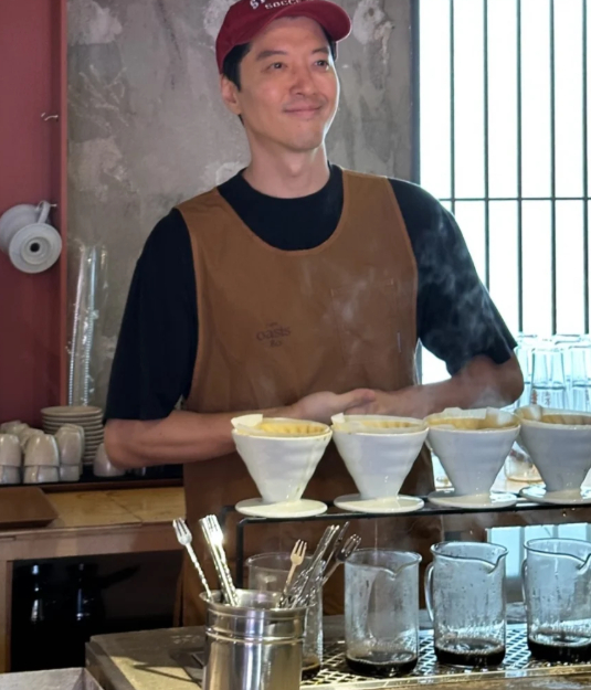 이동건은 1일 제주도에 오픈한 카페에서 일을 하고 있는 모습을 공개했다.