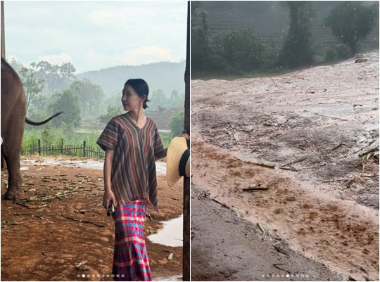 공개된 사진 속 이지혜는 딸 태리 엘리, 그리고 지인들과 태국 여행을 떠난 모습. 이지혜 가족이 코끼리를 만나러 간 가운데 큰 비가와서 온통 흙탕물이다. 불어난 흙탕물과, 온통 흙빛인 사진이 눈길을 사로잡는다. 마치 여행이 아니라 극한 훈련을 떠난듯하다.