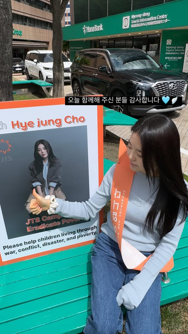 이날 조혜정은 서울 중구 명동 하나플레이파크에서 열린 '전쟁 내전 재난 빈곤 아이돕기 길벗 JTS 거리모금 캠페인'에 참석했다. 이 자리에는 조혜정뿐 아니라 배우 한지민, 이정은, 배종옥, 임세미, 김병옥, 노희경 작가 등도 함께 했다.