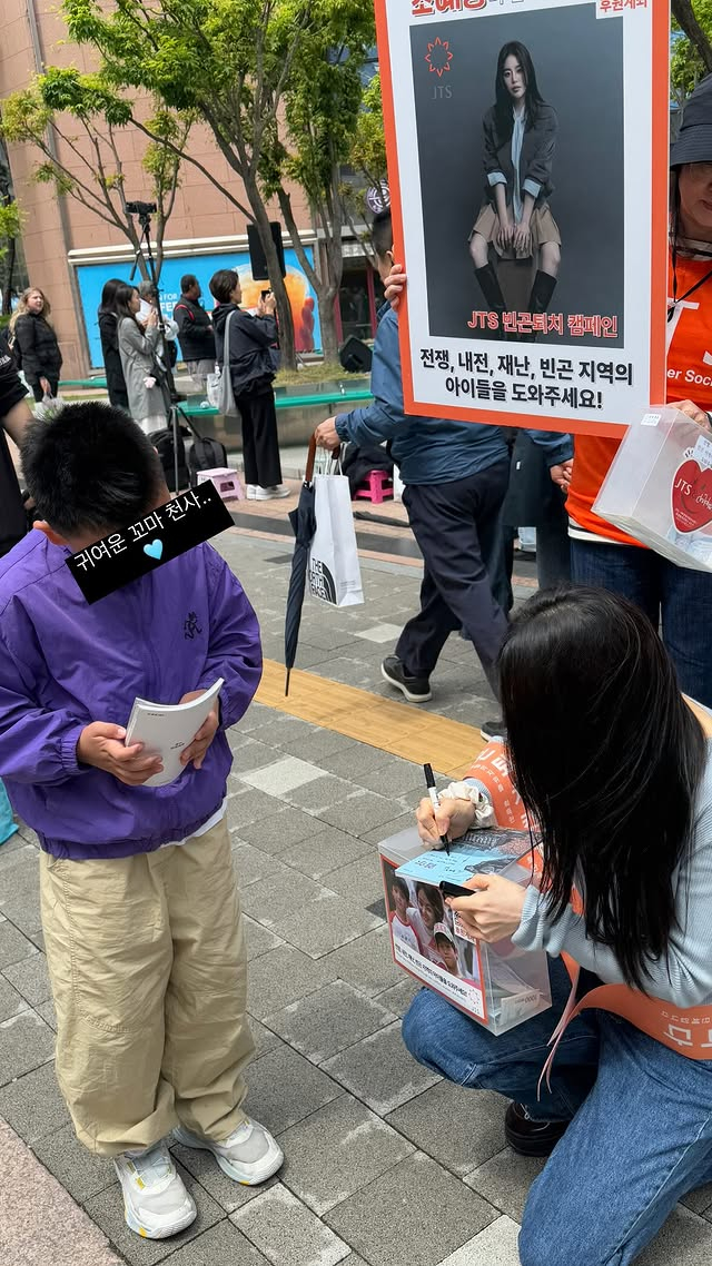 사진 속 조혜정은 자신의 프로필 사진이 담긴 플래카드 앞에서 엄지척 포즈를 취하는가 하면, 자신에게 사인을 요청한 한 어린 팬을 향해 "귀여운 꼬마 천사"라고 말했다.