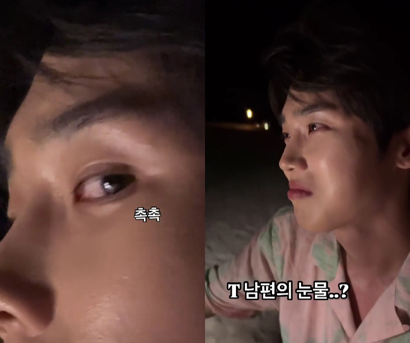 에일리는 "해변 위에서 식사도 하고 누워서 본 내 최애 영화 '노트북'"이라며 촉촉해진 최시훈의 눈을 클로즈업했다. 그는 "영화 볼 때는 F(MBTI 중 감성형)라고 한다"면서 "T(MBTI 중 이성형) 남편의 눈물. 끝까지 또르륵 없더라. 나만 또 오열"이라고 덧붙였다.
