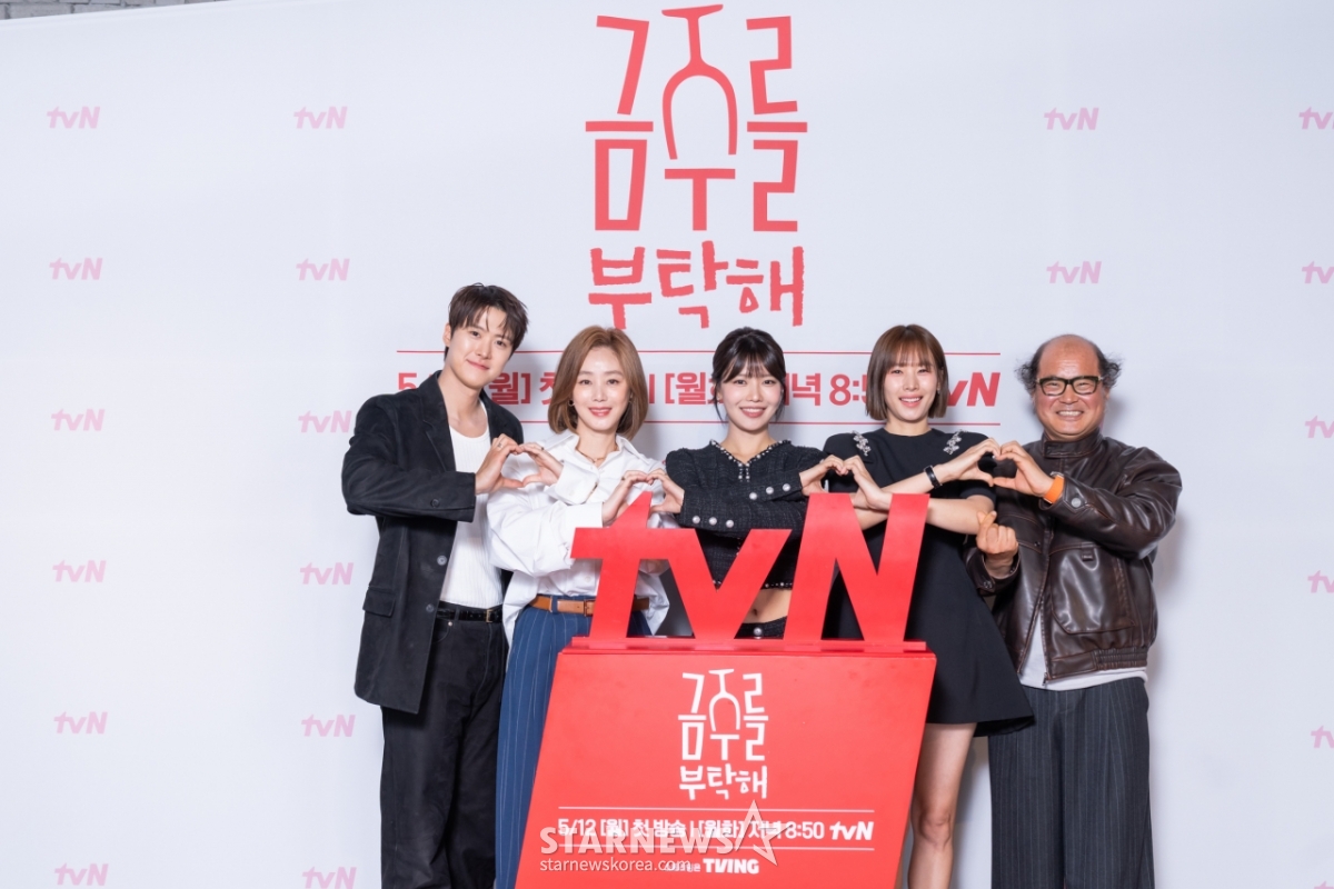 배우 공명, 김성령, 최수영, 조윤희, 김상호가 7일 오후 온라인으로 진행된 tvN 월화드라마 '금주를 부탁해' 제작발표회에 참석해 포즈를 취하고 있다. /사진제공=CJENM 2025.05.07