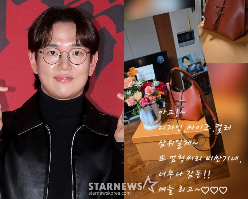 장성규는 아내가 직접 구입한 것으로 보이는 한 명품 브랜드 가방과 꽃다발 사진을 함께 게재했다. 특히 해당 사진에는 "아이고. 디자인, 사이즈, 컬러, 삼위일체. 또 엄청 비싼 거네. 너무나 감동. 며느리 최고"라고 적혀있어 보는 이들에게 감동을 안겼다.