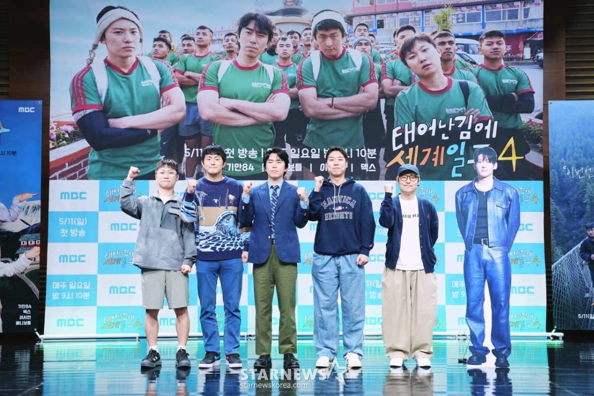 연예방송'태어난 김에 세계일주4, 화이팅'[★포토]발행 : 2025.05.08 ・ 16:19이동훈 기자광고삭제빠니보틀, 기안84, 이시언, 김지우PD, 박동빈PD가 8일 서울 마포구 상암동 MBC에서 진행된 예능프로그램 '태어난 김에 세계일주4' 제작발표회에 참석해 포즈를 취하고 있다. /사진제공=MBC 2025.05.08<저작권자 © 스타뉴스, 무단전재 및 재배포 금지>태어난김에세계일주4화이팅세계일주니보이시언추천 기사이동훈 기자기자홈좋아요 연예-방송의 인기 급상승 뉴스연예-방송의 최신 뉴스