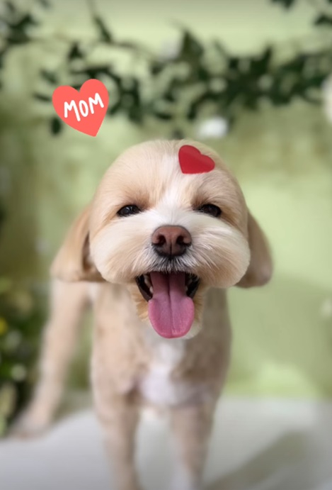 또 다른 사진 속에는 미용을 마친 반려견이 행복한 미소를 지으며 보는 사람도 웃게 만든다.